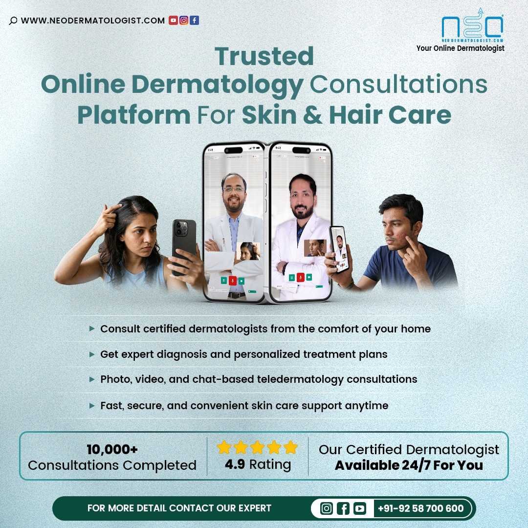Know MoreLooking for an online dermatologist or a nearby skin specialist or an online dermatology consultation? Visit NeoDermatologist.com - your trusted platform for expert skin and hair consultations, available anytime, anywhere. Whether you need an online dermatologist consultation, dermatologist consultation online 24/7, acne treatment from a certified dermatologist, or advice from a ringworm specialist or hair doctor, we’ve got you covered. NeoDermatologist.com offers global, worldwide access, making it easy to connect with experienced and certified dermatologists from the comfort of your home. With flexible options like photo or video consultations and a quick response system, you can skip the wait and get the right treatment fast. So, if you’ve been searching for a "dermatologist near me," or looking for the dermatologist consultation online from anywhere remember that with NeoDermatologist.com, you can access expert online dermatologist consultations globally, no matter where you are in the world - bringing trusted skin care right to your screen.